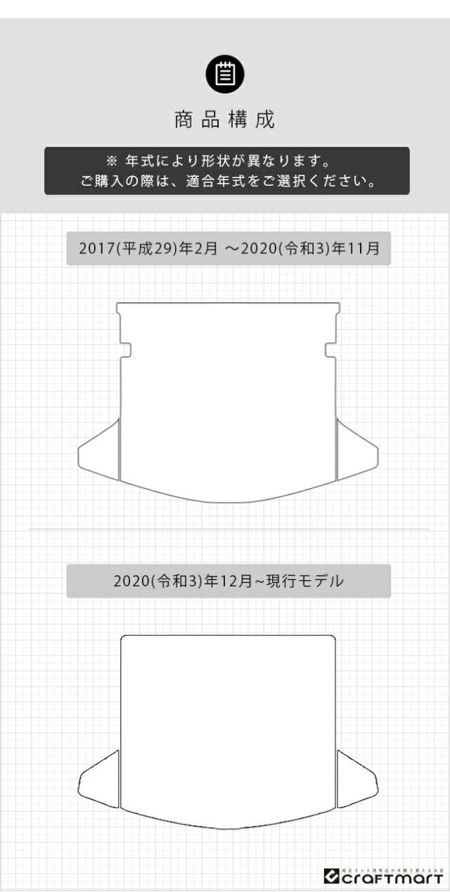 | 商品構成 | ラゲッジマット 3枚 ※ 年式により形状が異なります。 |