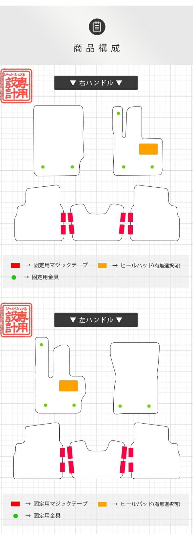 | 商品構成 | 専用フロアマット5枚(運転席1枚 助手席1枚 後部座席3枚) |