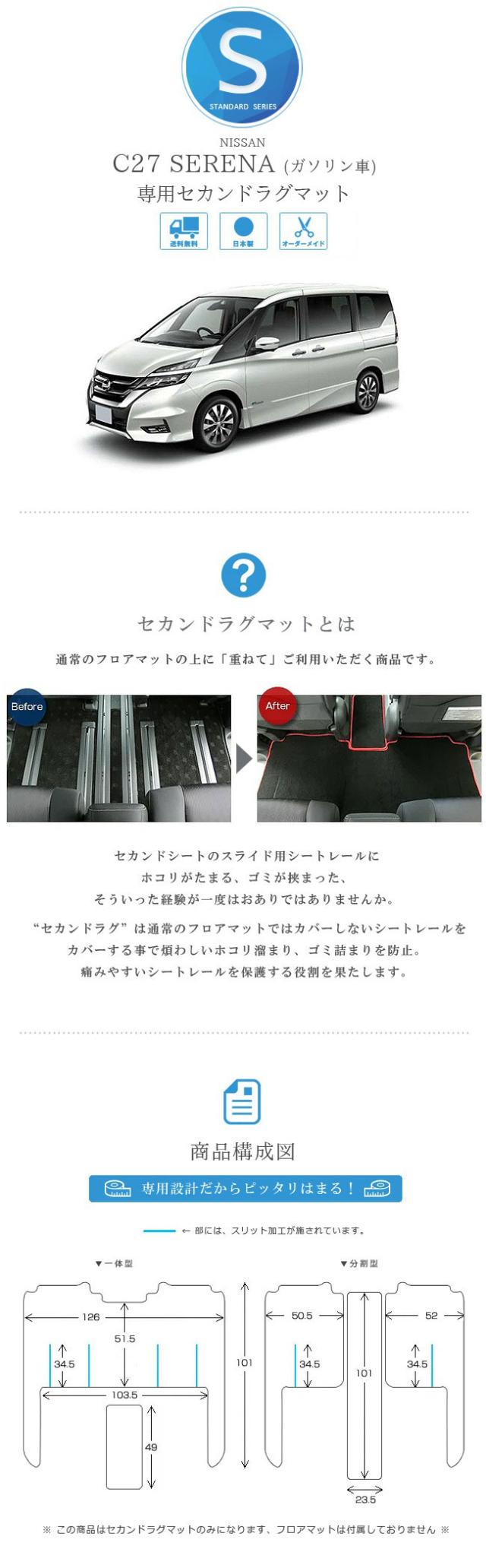 セレナ c27 ガソリン車 セカンドラグマット STDマット ラグマット マット カーマット ゴミつまり防止 内装 カスタム