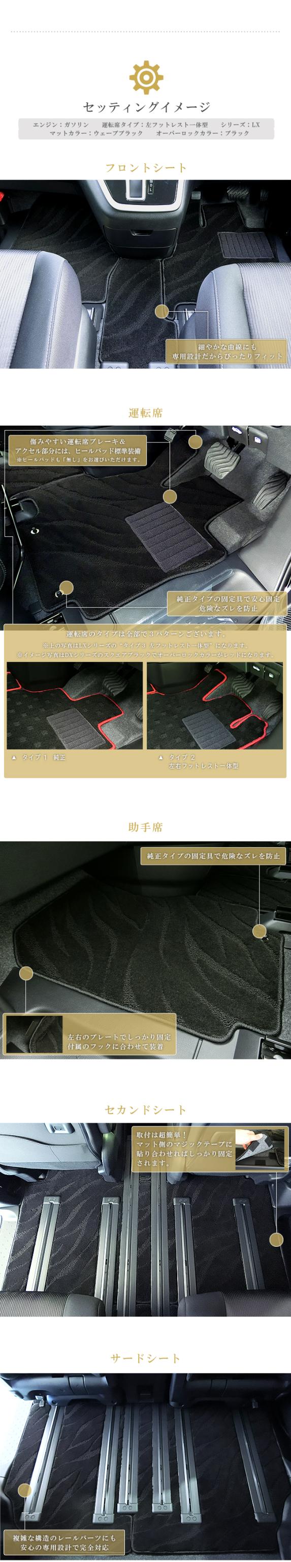 | 商品構成 | 【専用フロアマットセット】 フロント用 2枚 (運転席・助手席) リヤシート用 1枚 ラゲッジルーム用 1枚 ☆ オプション購入のお客様のみ ※ 付属品:メンテナンス書 |