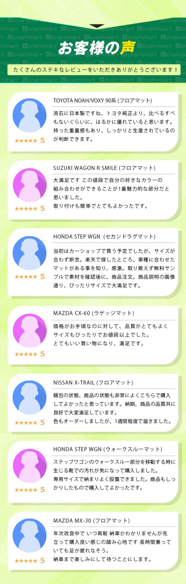 | 商品構成 | 専用フロアマット 3枚 運転席 1枚 助手席 1枚 後部座席 1枚 |