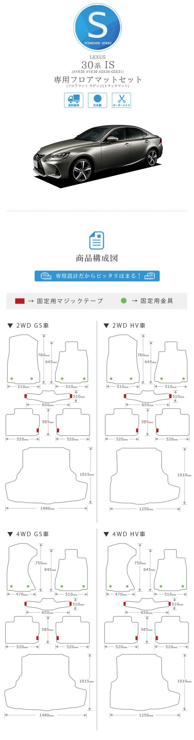 【送料無料】LEXUS レクサス 30系 IS 250 300h 300 350 フロアマットセット