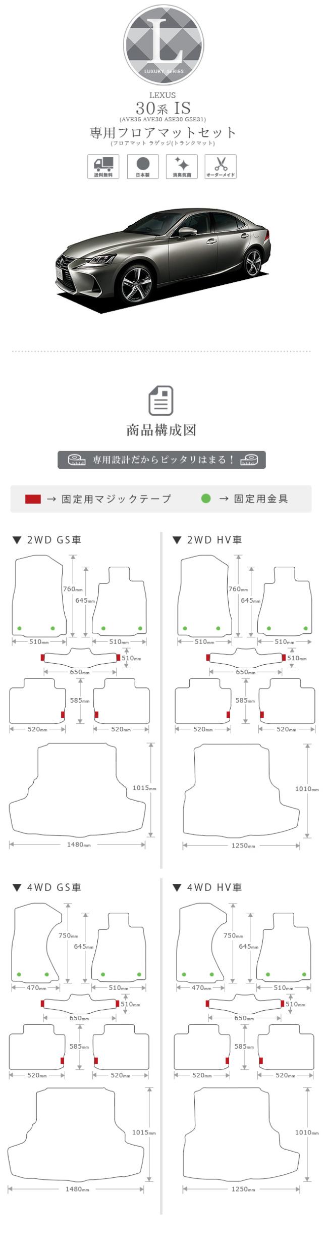 【送料無料】【消臭抗菌加工済】LEXUS レクサス 30系 IS 250 300h 300 350 フロアマットセット