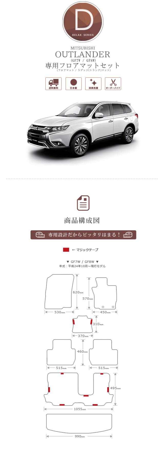 三菱 アウトランダー フロアマット ラゲッジマット DXマット GF7W 8W 7人乗り フロアマットセット