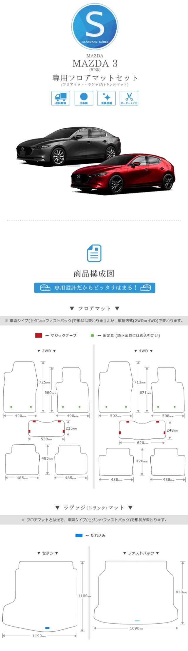 マツダ3 フロアマット ラゲッジマット BP系 STDシリーズ MAZDA3 専用 車用アクセサリー カーマットセット 内装 カスタム 車用品 内装パーツ