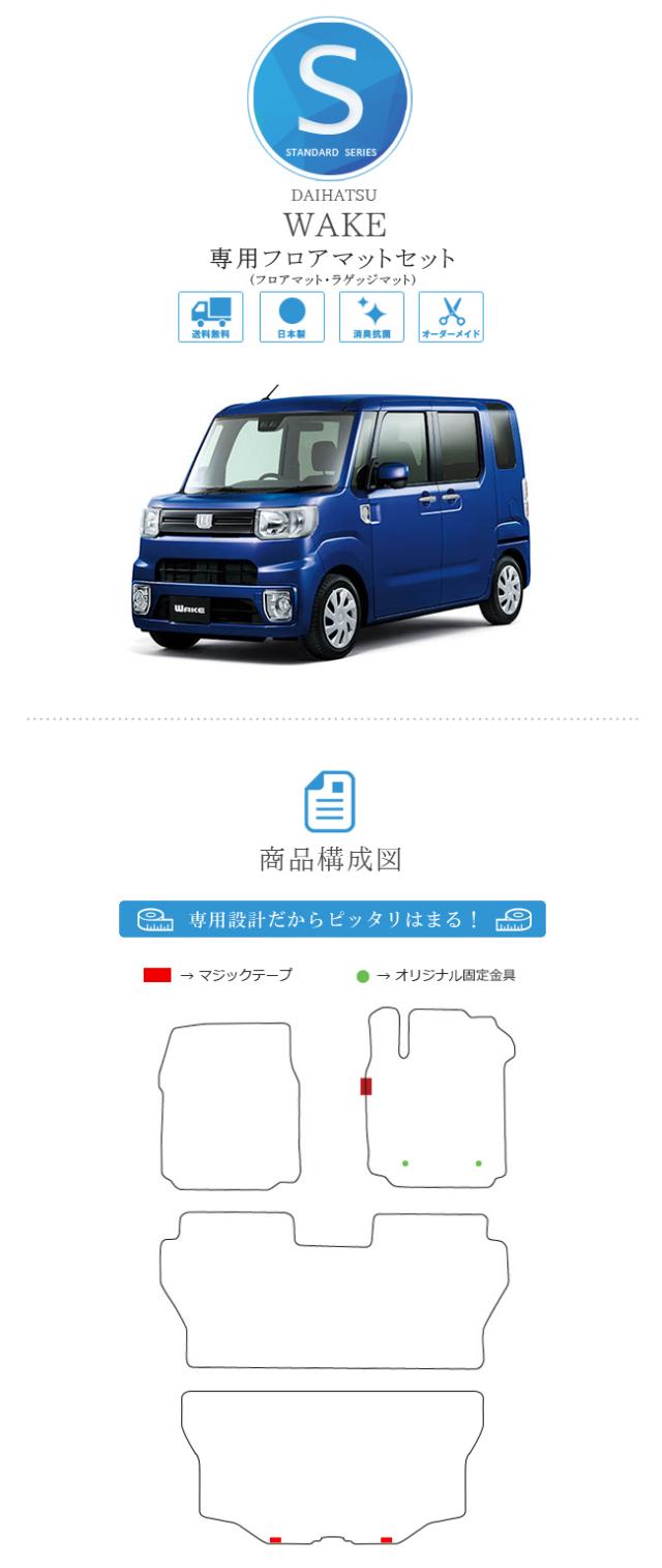 ダイハツ ウェイク フロアマット ラゲッジマット セット STDマット LA700S LA710S カーマット カスタム マット 内装 カスタム DAIHASTU WAKE ラゲージマット