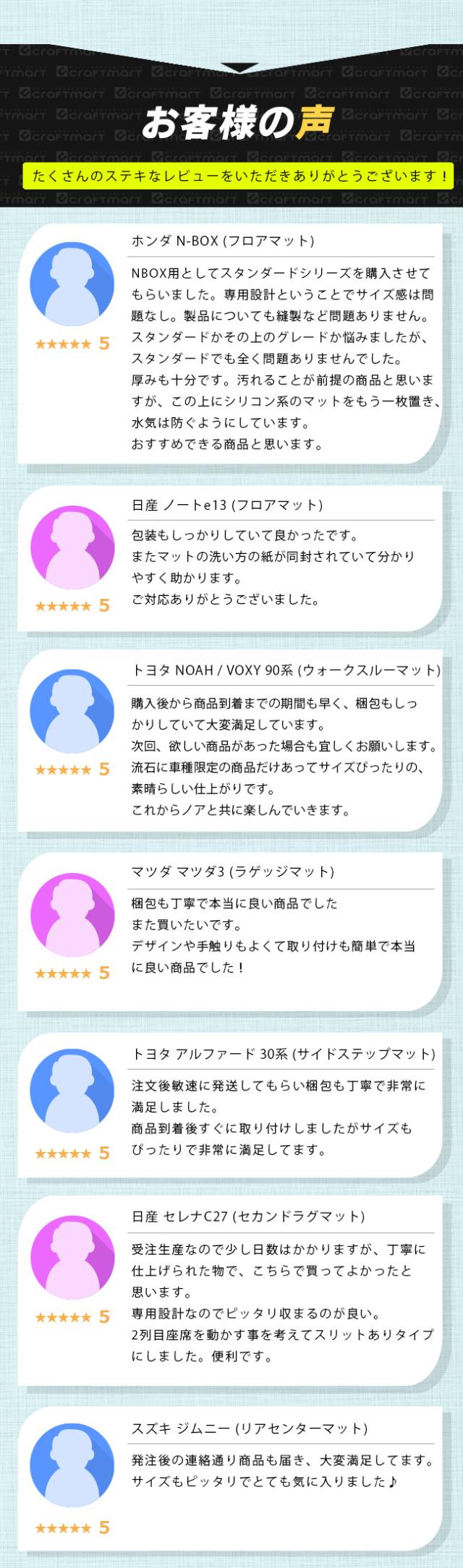 | 商品構成 | 専用フロアマット2枚 (フロント用 1枚 リア用 1枚) ※ 付属品:留め具2個 メンテナンス書 |