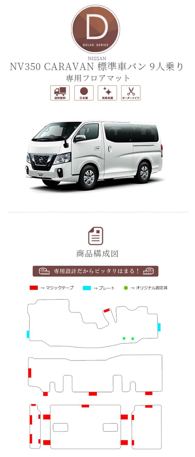 日産 NV350 キャラバン バン 9人乗り 標準車 フロアマット DXシリーズ 内装カスタム アクセサリー NISSAN CARAVAN