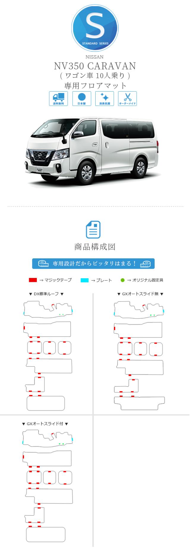 | 適合車種 | NISSAN NV350 CARAVAN 日産 キャラバンワゴン 10人乗 年式:年式:2012(平成24)年6月〜2021(令和3)年9月 |