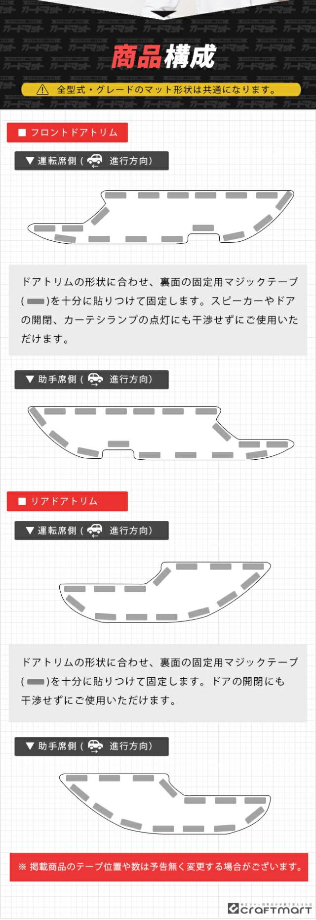 | 商品構成 | フロントドアトリム用 2枚 リアドアトリム用 2枚 |