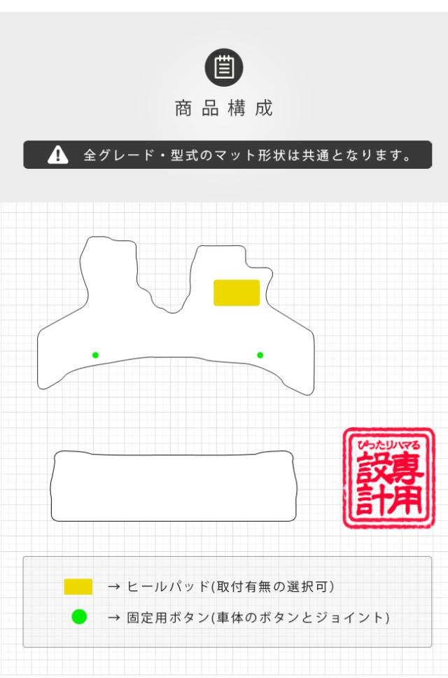 | 商品構成 | フロント用フロアマット 1枚 リア用フロアマット 1枚 |