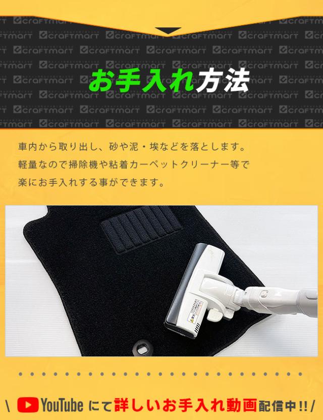 | 商品構成 | フロント用 2枚 (運転席・助手席) ウォークスルー用 1枚 セカンドシート用 1枚 サイドステップ用 2枚(左右毎各1枚) サードシート用 1枚 ※ 車両モデル・コンソールボックス有無によりマット形状が異なります。 |