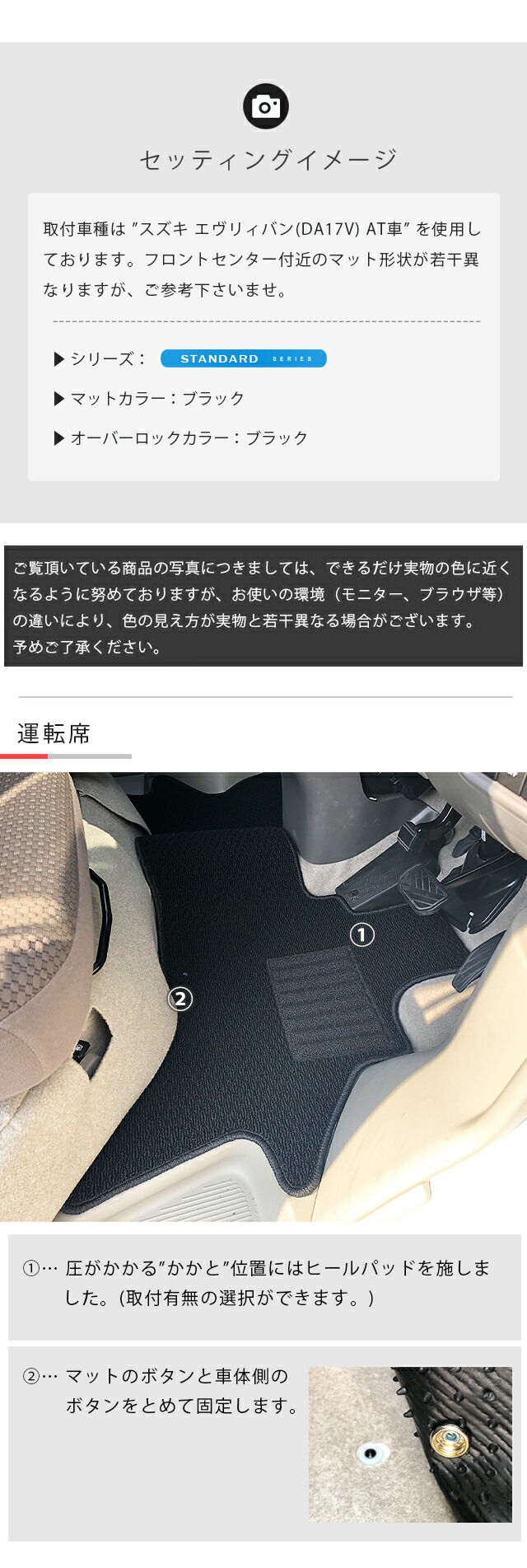 | 適合型式 | DA17W ※ 全型式・グレードのマット形状は共通です。 |