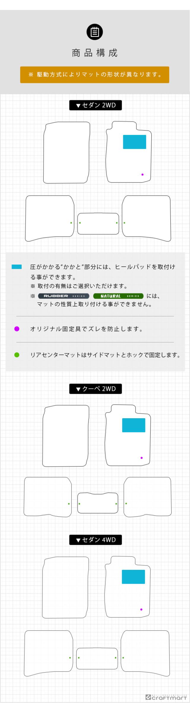 | 適合型式 | AE110系 ※ 駆動方式によりマット形状が異なります。 |