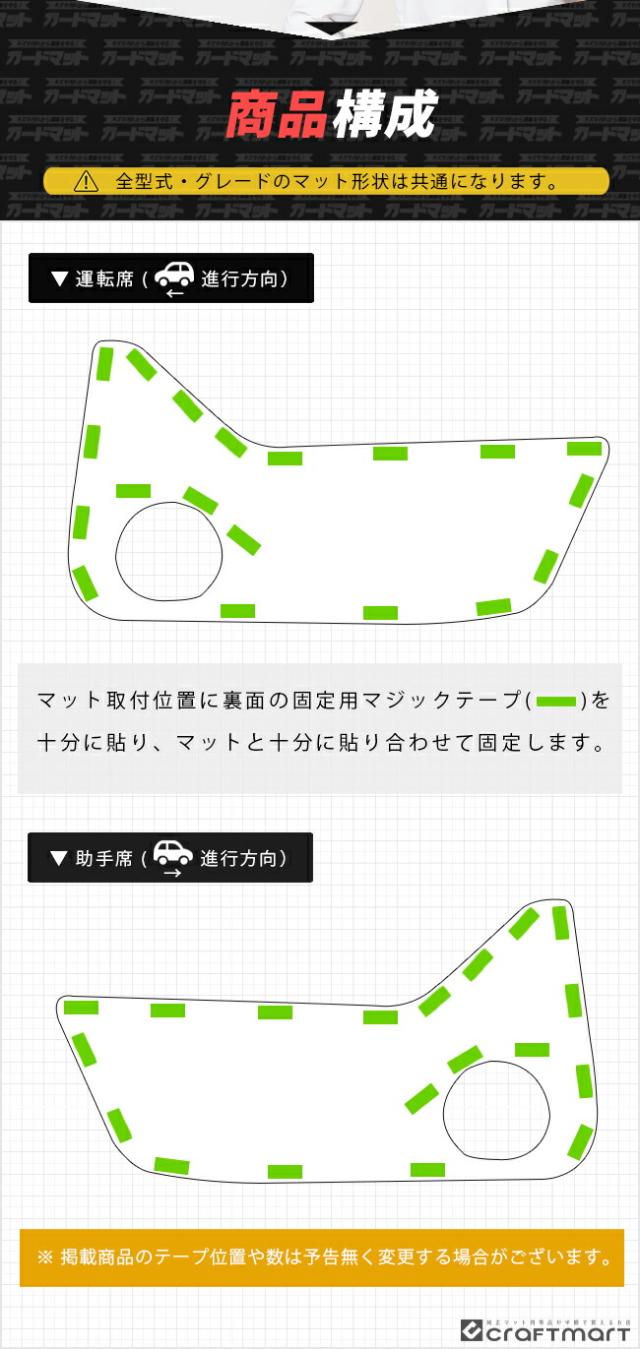 | 商品構成 | 運転席側リアドアトリム用ガードマット 1枚 助手席側リアドアトリム用ガードマット 1枚 |