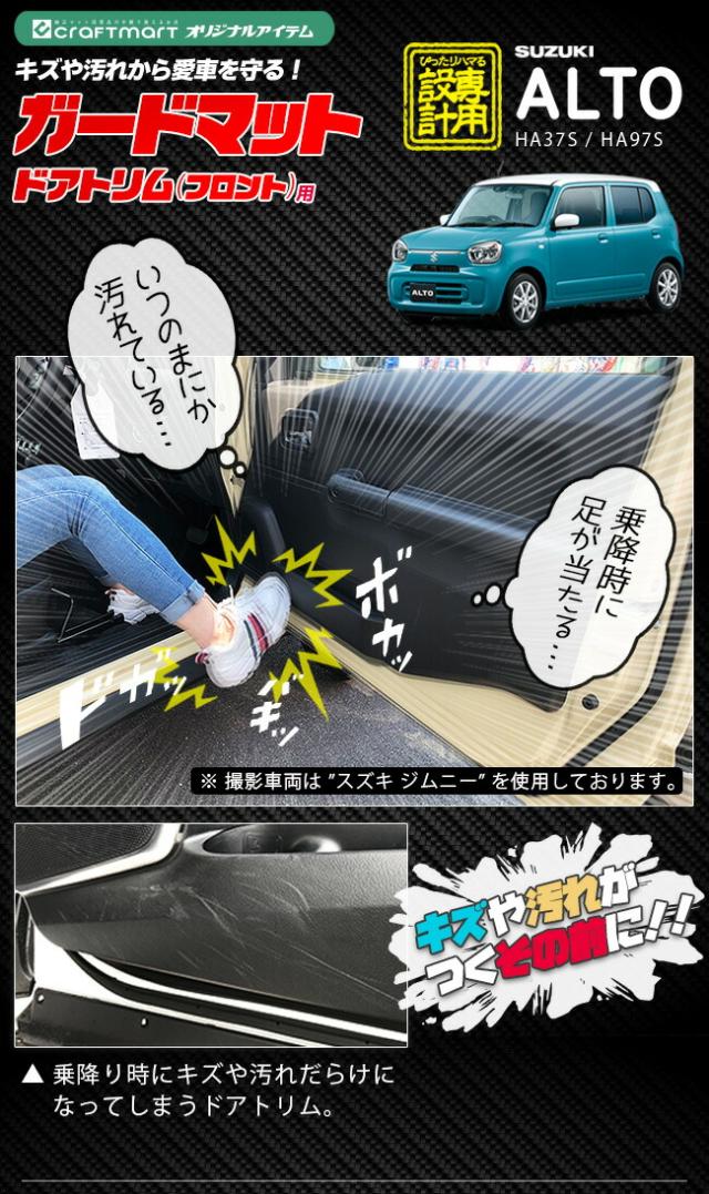 スズキ アルト HA37S HA97S ガードマット キックガード ドアトリム用 2枚組 アクセサリー パーツ ドレスアップ 車用品 車用アクセサリー キズ防止 内装 カスタム フロアマット