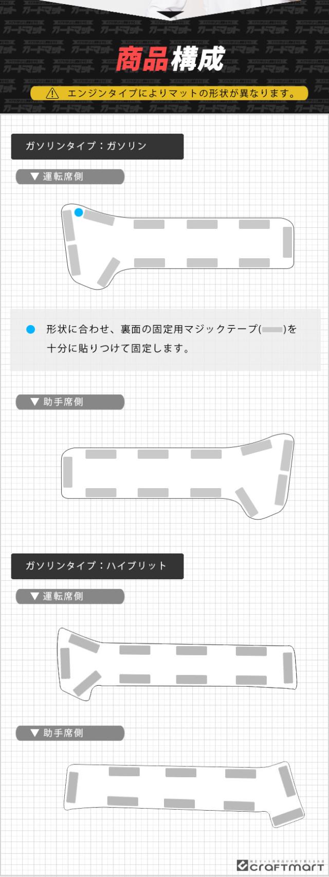 | 商品構成 | 運転席下用マット 1枚 助手席下用マット 1枚 |
