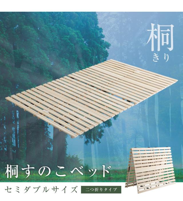 桐すのこ 折りたたみベッド SDサイズ Coh(ソーン) すのこベッド セミダブルベッド すのこマット スノコ 木製 桐 2つ折り 湿気 通気性 カビ ダニ 軽量 収納 コンパクト 布団干し 部屋干し フロアベッド おしゃれ シンプル