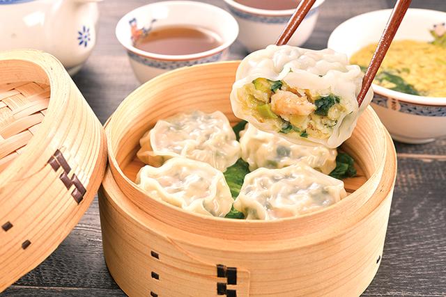 ・餡はニラと海老入り。「水くわい」の食感がほどよいアクセントになっています。