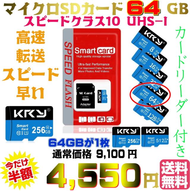 【送料無料・税込み】64GB マイクロ SD カード Micro SD card class 10 クラス UHS 1 激安 爆速 3年保証 記録 媒体 書き込み 読み込み TF 高品質 アダプター付き