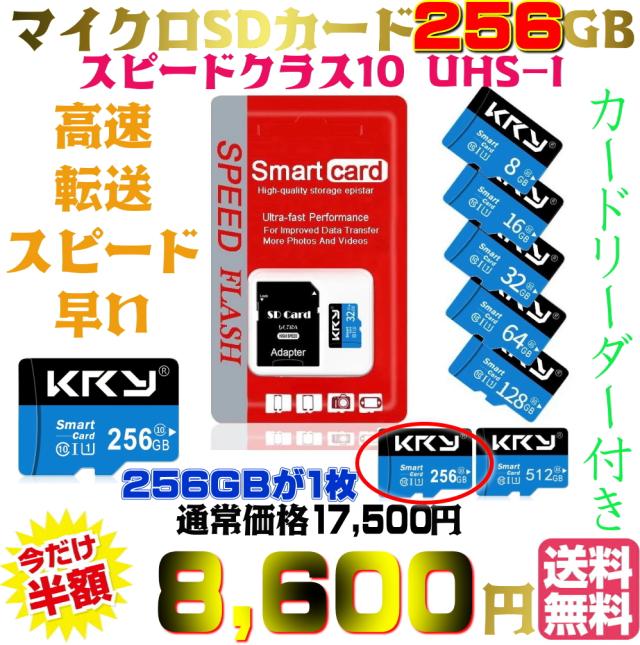 【送料無料・税込み】256GB マイクロ SD カード Micro SD card class 10 クラス UHS 1 激安 爆速 3年保証 記録 媒体 書き込み 読み込み TF 高品質 アダプター付き