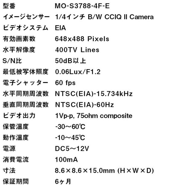 ■ MO-S3788-4F-E CCIQ採用 超小型モノクロカメラ