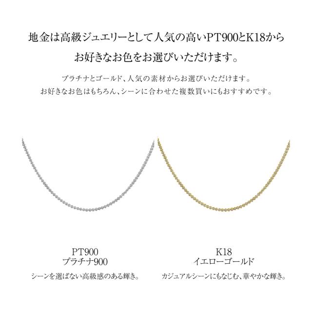 地金は人気の高いプラチナ(PT900)と18金イエローゴールドの2色からお好きな色をお選びいただけます。