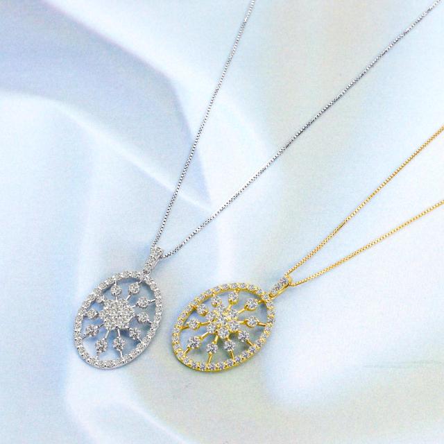 丸みを帯びた、丸みを帯びた、煌びやかで胸元で存在感を放つオーバルデザインネックレス。