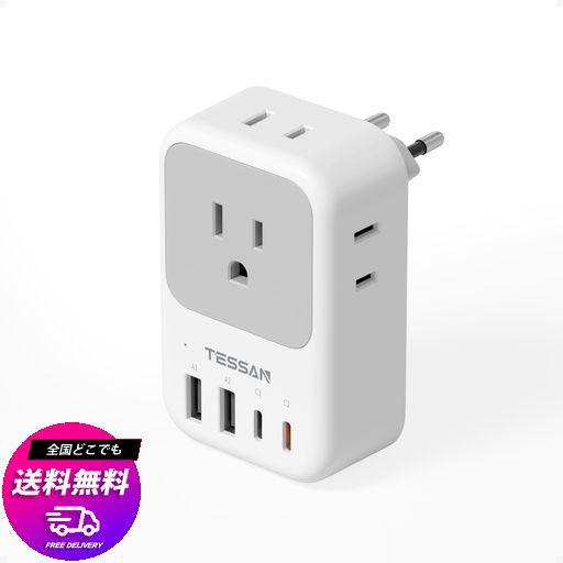 TESSAN 変換プラグ Cタイプ 海外旅行用 変換器 電源変換アダプター コンセントUSB-C付き 4個AC差込口 2個USB-Aポート 1個TYPE-Cポート 韓国 イタリア スペイン ドイツ ベトナム オーストリア ヨー…