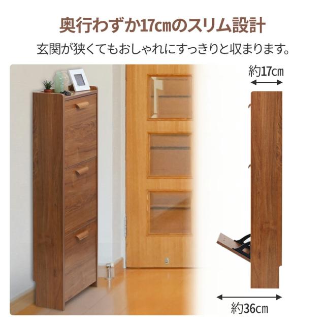 シューズラック スリム 靴箱 薄型 省スペース シューズボックス 木製 3段 奥行17cm 幅40cm 下駄箱 靴入れ 靴 シューズ 収納 大容量 分割 軽量 カバー 玄関収納 玄関 棚 おしゃれ 送料無料 12ss
