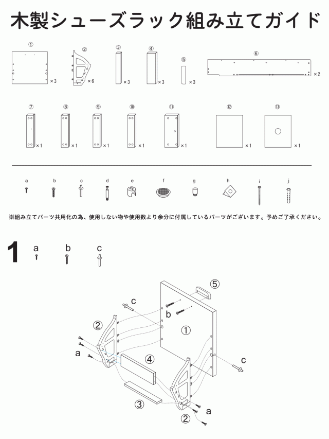 ※説明書が付属しない場合は、商品ページ内の【組み立てガイド】をご参照ください。