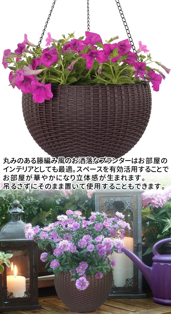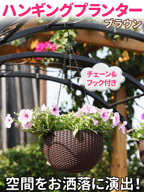 鉢 鉢植え 観葉植物 吊るす プランター ハンギング バスケット 吊り下げ チェーン付き ブラウン 植木鉢 壁掛け 壁掛けプランター おしゃれ 大型 ガーデニング 送料無料 09ss