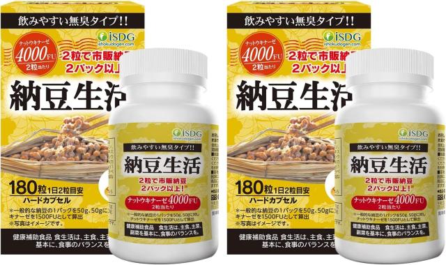 ISDG ナットウキナーゼ 4000FU 納豆生活 納豆キナーゼ サプリ 納豆菌培養エキス 高活性 栄養補助食品 日本生産 180粒 90日分 (2個