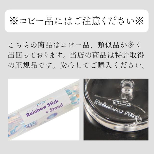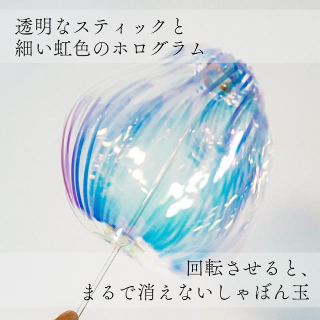 「消えない虹を作りたい——。」そんなひとりの少年の夢が時を経てひとつのかたちになりました。透明なスティックに流れる細い虹色のホログラムは、指先でひねって回転させると遠心力でまるでしゃぼん玉のように大きく広がります。触れても壊れない、決して消えないしゃぼん玉。光を弾き返すしゃぼんの虹は子どもから大人まで誰をも笑顔にさせてくれます。レインボースティックと名付けられたこの魔法の杖は、2000年より世界レインボースティック協会をもとに今日も人々にHappyを届けます!-ご購入前にお読みください-