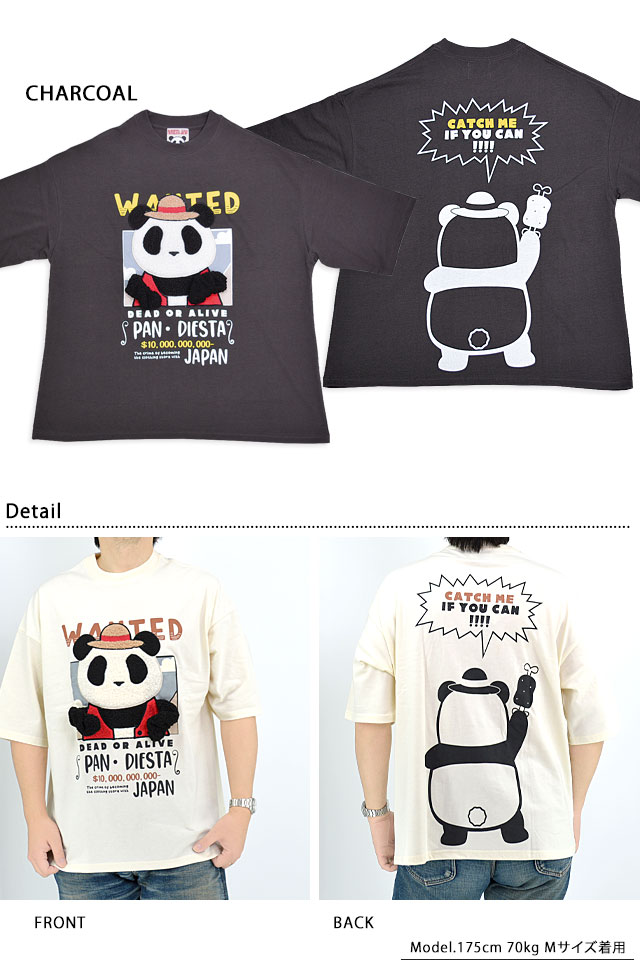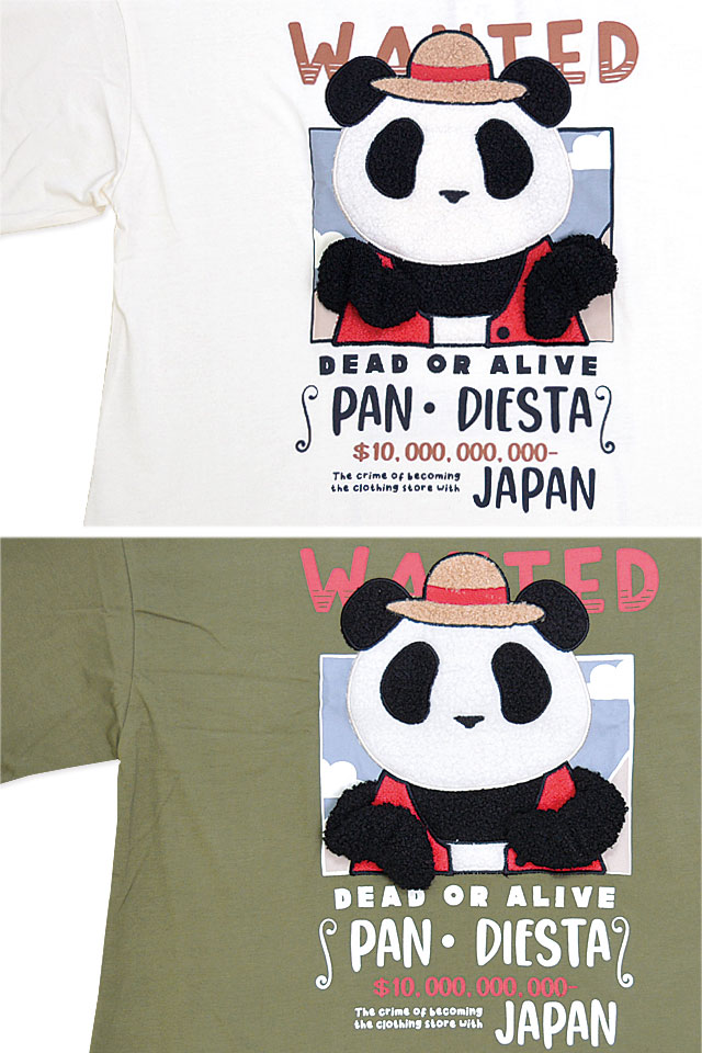 和柄ブランド【錦】の姉妹ブランドとして誕生した、お茶目なパンダをモチーフとした【PANDIESTA JAPAN】より「手ぶらパンダ半袖Tシャツ(554471)」のご紹介です。 今や、錦の定番モチーフとなった「錦PANDA」!! フロントには麦わら帽子をかぶったパンディエスタの手配書をデザイン。 表面がもこもことしたサガラ刺繍で表現されており、両手が飛び出しているギミックTシャツです。 彼の姿を見つけたらすぐに教えてください! バックには挑戦的なパンディエスタの後ろ姿をプリントしました。 ボディーには綿とポリエステルのさらりとした肌触りのTシャツ生地を採用しました。 男女問わず着用して頂けるユニセックスアイテムです! | ||||||||||||||||||||
