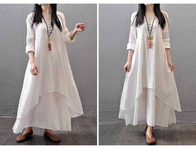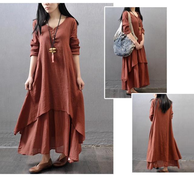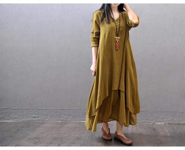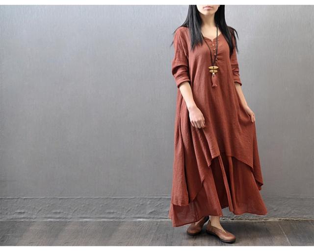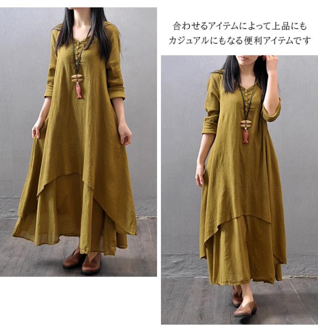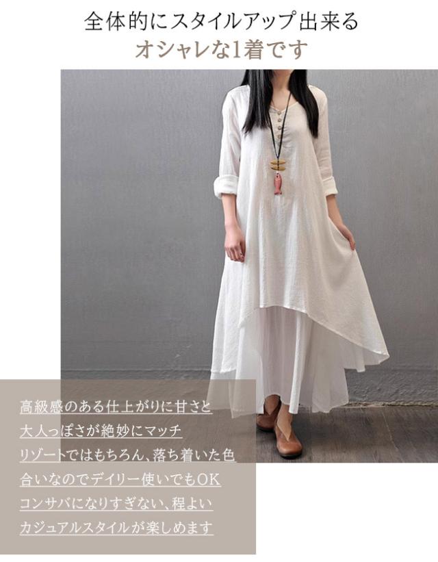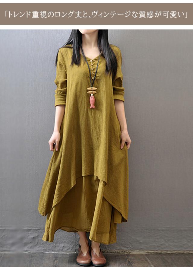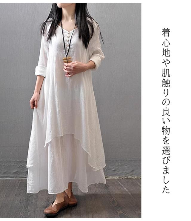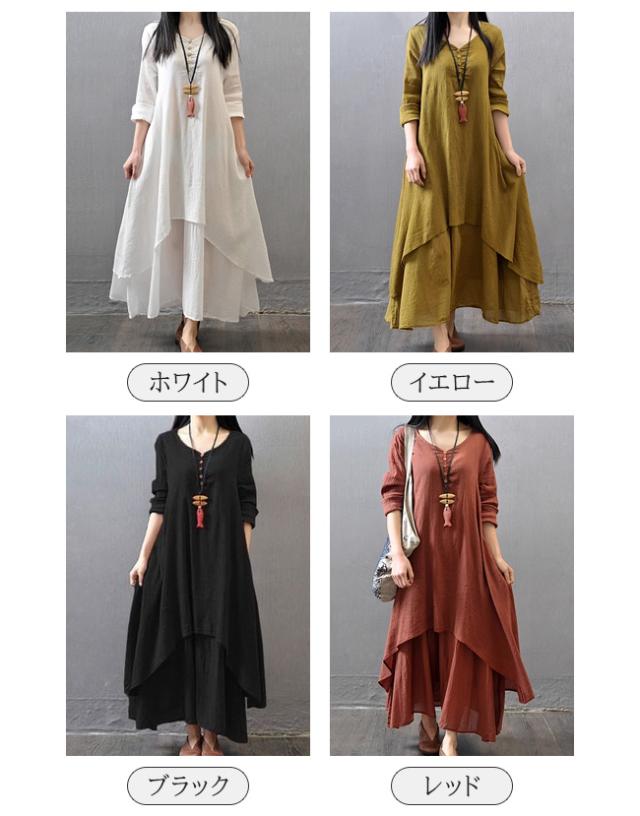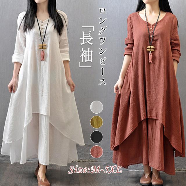 ワンピース レディース ロングワンピース マキシワンピース コットン リネン 綿麻 麻 ロング リゾート マキシ丈 大人 きれいめ Aライン フレア 七分袖 長袖 大きいサイズ ナチュラル 森ガール 体型カバー ゆったり 春 夏 夏 秋 秋冬 シンプル カジュアル 無地