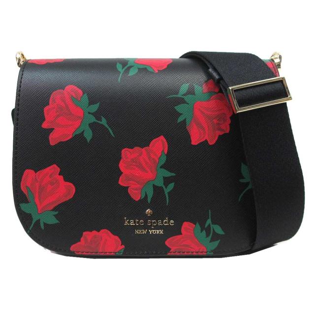 ケイトスペード バッグ ショルダーバッグ kate spade マディソン ローズ トス プリント サドルバッグ 斜め掛け KE533 001 (ブラック×レッド系) アウトレット レディース