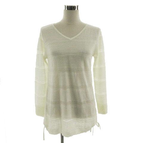 【中古】エル ELLE ニット Vネック 長袖 かぎ編み切替え 裾ドロスト ラメ アイボリー 40 レディース