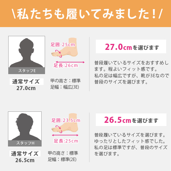 取り扱いサイズ:25cm 25.5cm 26cm 26.5cm 27cm
