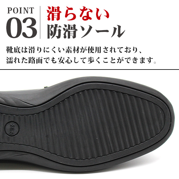 靴底は滑りにくい素材が使用されており、濡れた路面でも安心して歩くことができます。
