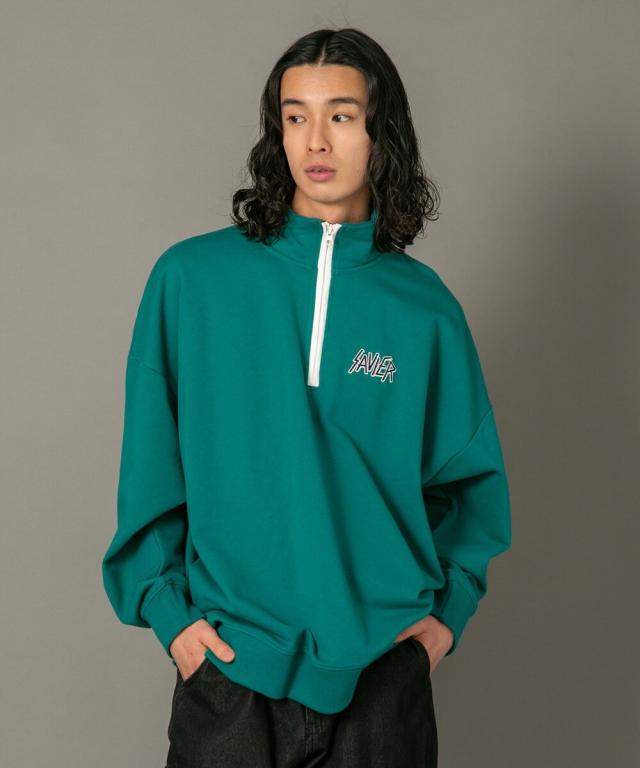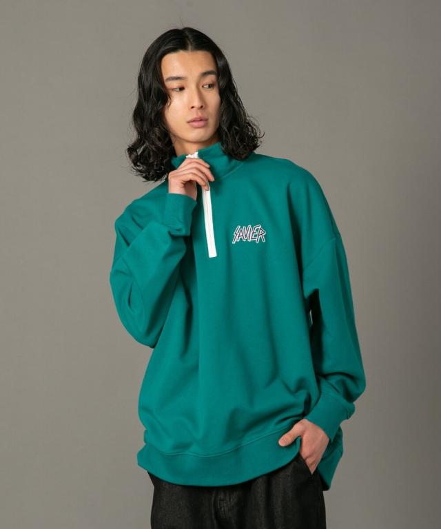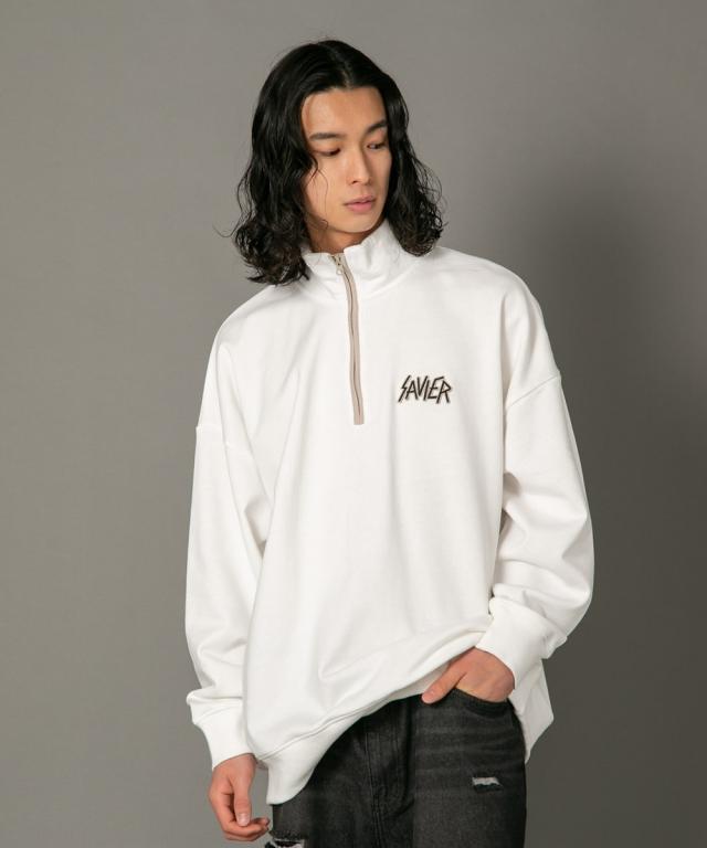 【SAVIER】 ワンポイント ロゴ 刺繍 ハーフ ジップ プルオーバー
