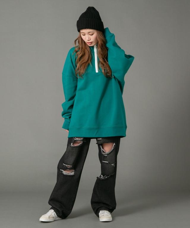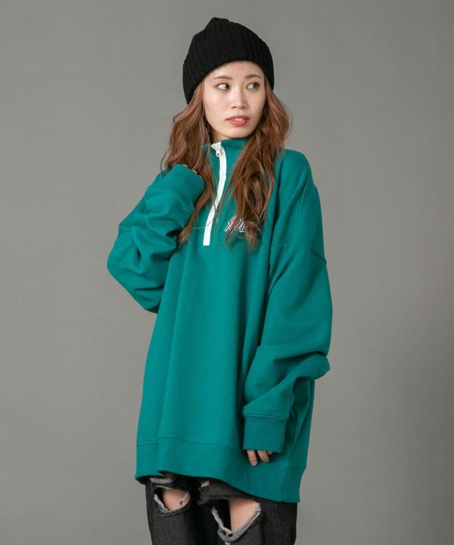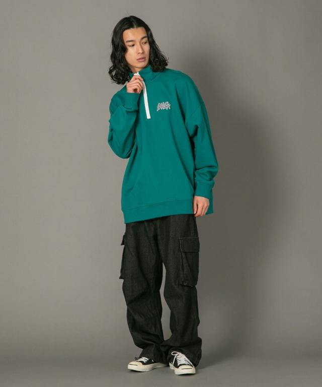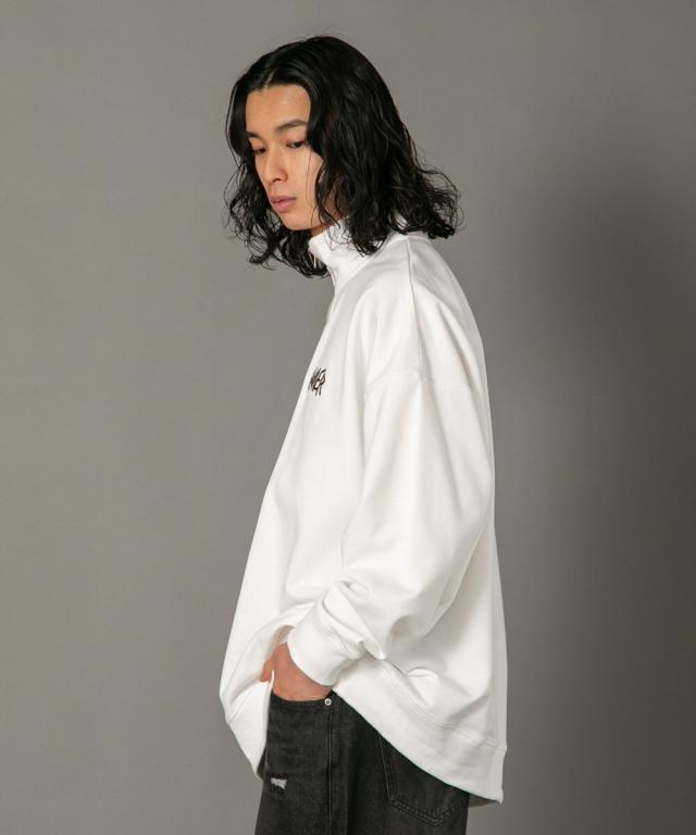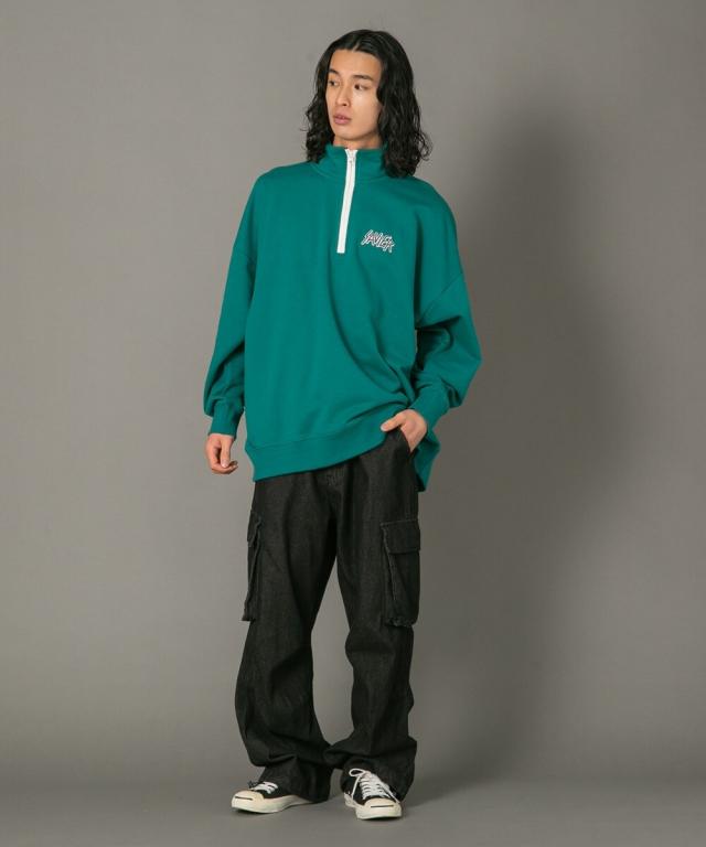 胸にはロゴ刺繍を施し古着のような雰囲気の1枚。ハーフジップデザインで開けても閉めてもキマる!キレイ目にもメンズライクにも落とし込めるシンプルながら使い勝手の良い一枚。