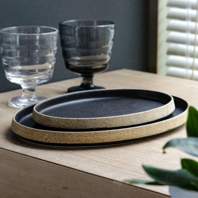 オーバルプレートは幅26cmと21cmの2サイズ展開です。21cmは前菜やサラダ、デザートなどにぴったりなサイズで、26cmはメイン料理を乗せたり、余白をもたせて盛り付けを楽しめるようなサイズです。サイズ違いで揃えると使い方の幅も広がります。