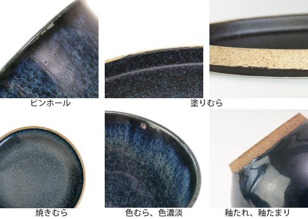 原料や製造方法により、上記のような特性がみられる場合があります。ひとつひとつのうつわの持つ個性、温かみある風合いとしてお楽しみいただければ幸いです。