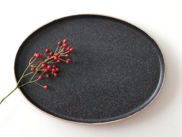土のあたたかみを感じる落ち着いた雰囲気のオーバルプレートです。メイン料理や数人分のお料理を盛り付ける盛皿としてぴったりなサイズで、和食はもちろん、洋食でも合わせやすいモダンな印象の器です。