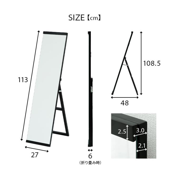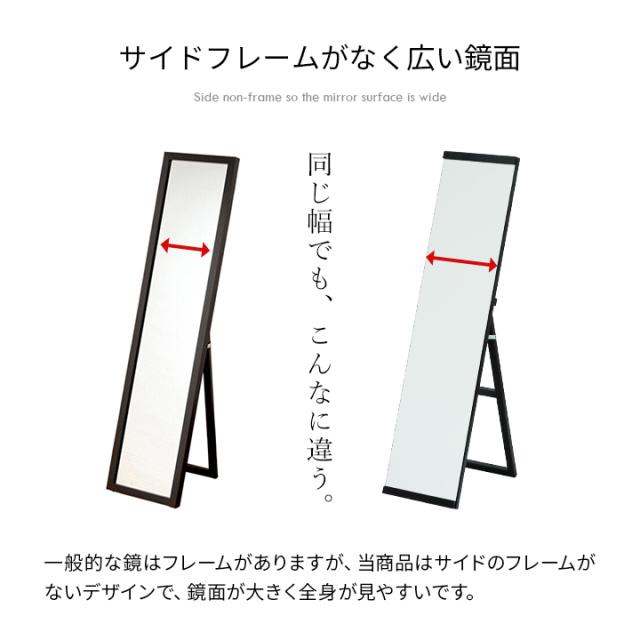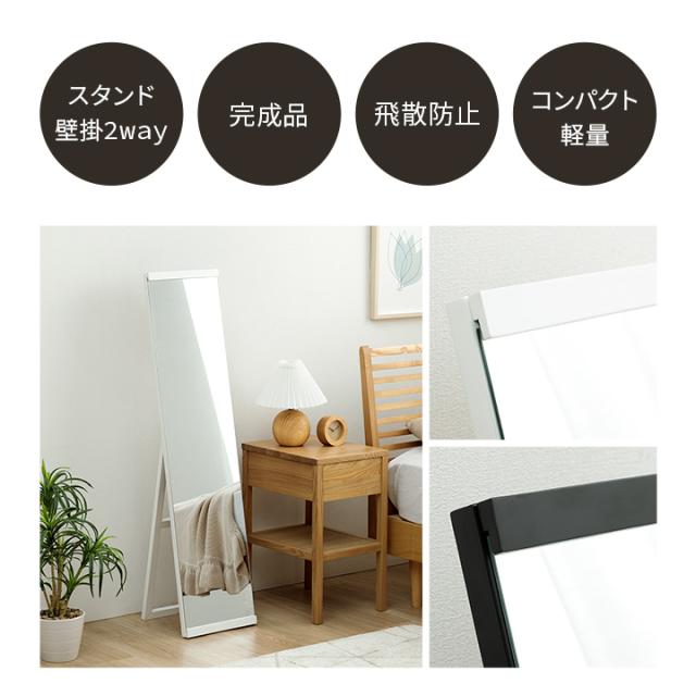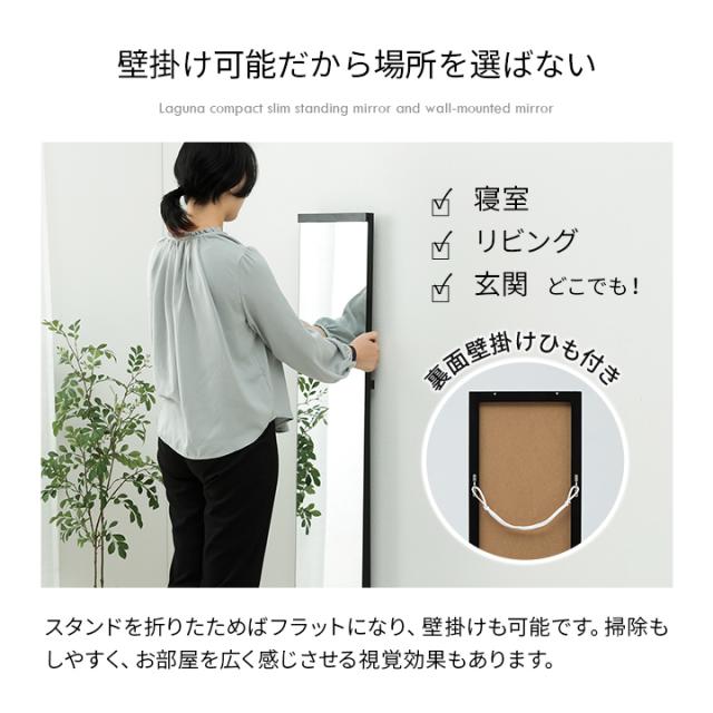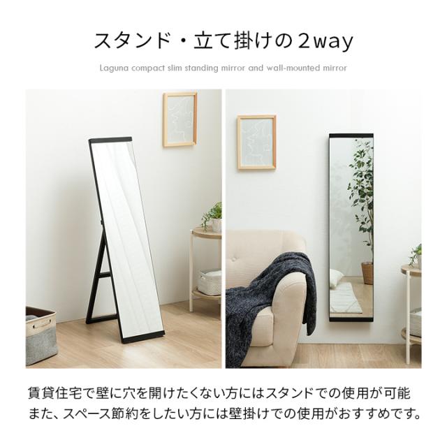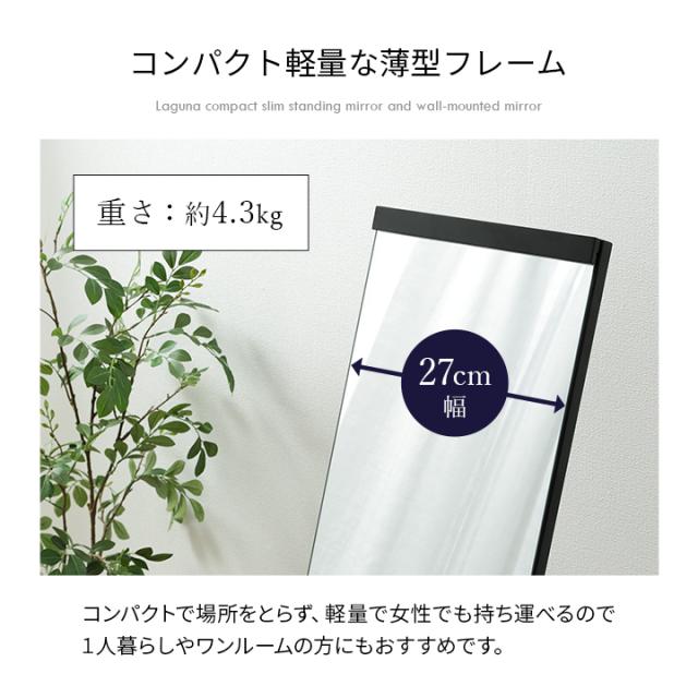 スタンドミラー 全身 鏡 全身鏡壁掛け 壁掛け 飛散防止 コンパクトサイズ 軽量 「 LAGUNA -ラグナ- 」 27×113cm ノンサイドフレーム ブラック ホワイト コンパクト設計 姿見 一人暮らし 2way 全身 小さめ 新生活