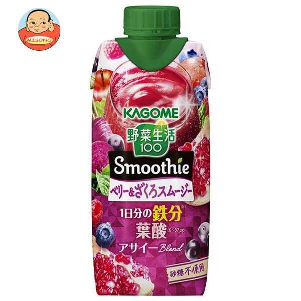 カゴメ 野菜生活100 Smoothie(スムージー) ベリー&ざくろスムージー 330ml紙パック×12本入×(2ケース)| 送料無料 スムージー ミックスジュース 柘榴