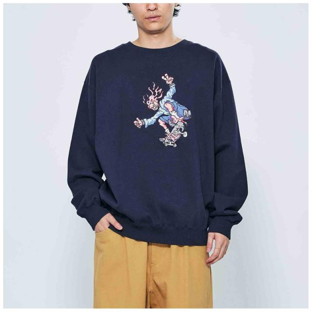 BURNING MONSTER CREWNECK SWEATSHIRT フロントとバックにデザインされたグラフィックが存在感抜群のクルーネックスウェット。