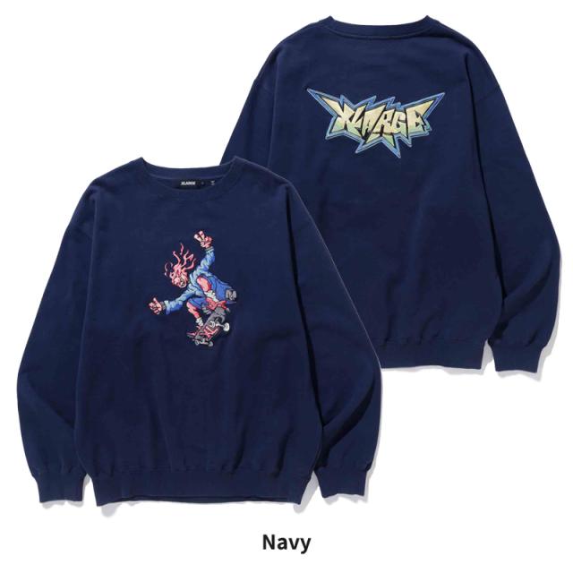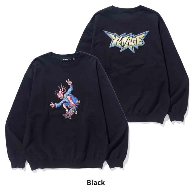 エクストララージ XLARGE BURNING MONSTER CREWNECK SWEATSHIRT クルーネック スウェットシャツ トレーナー メンズ 101234012021
