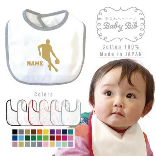 「ドリブル」名入れベビービブ/バスケットボール、部活、スポーツ、名入れ、、エコバッグ、コットンバッググッズ